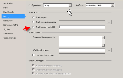 You need to change the project setting to start the project from the site url you’re debugging with:
